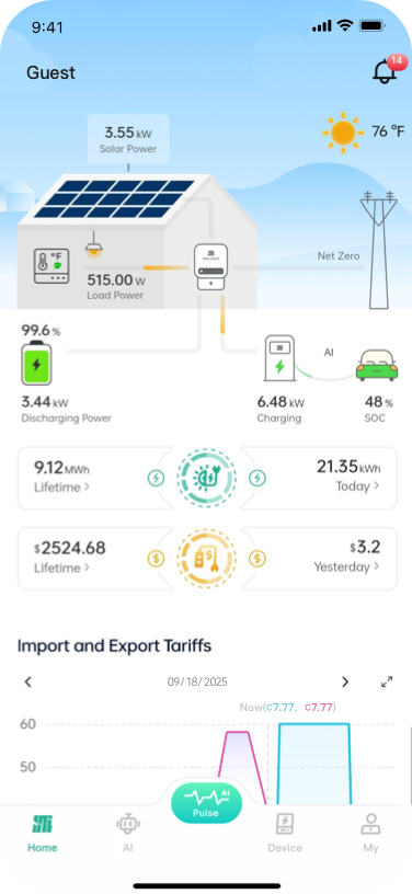 The SolarAI App gives you X-ray vision into your home’s energy. See your savings grow in real-time, control your battery, EV, Thermostat and more, receive instant health alerts. Complex data, presented simply. All at one place powered by AI.